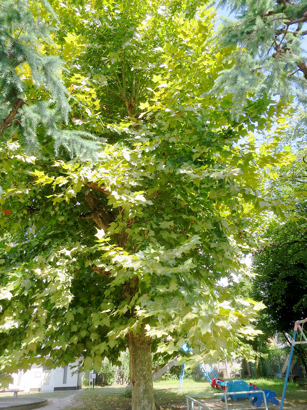 上記3種類のプラタナスを見分けるのは難しいが、葉の切れ込みが大きい順に、